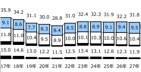 (出典元:学歴別就職後3年以内離職率の推移「大卒」)
