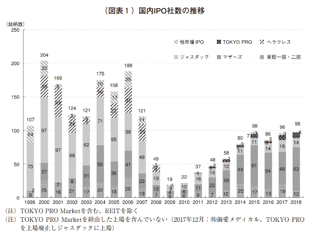 (引用元:最近のIPOの動向と東証の 上場支援活動について 国内IPO社数の推移)