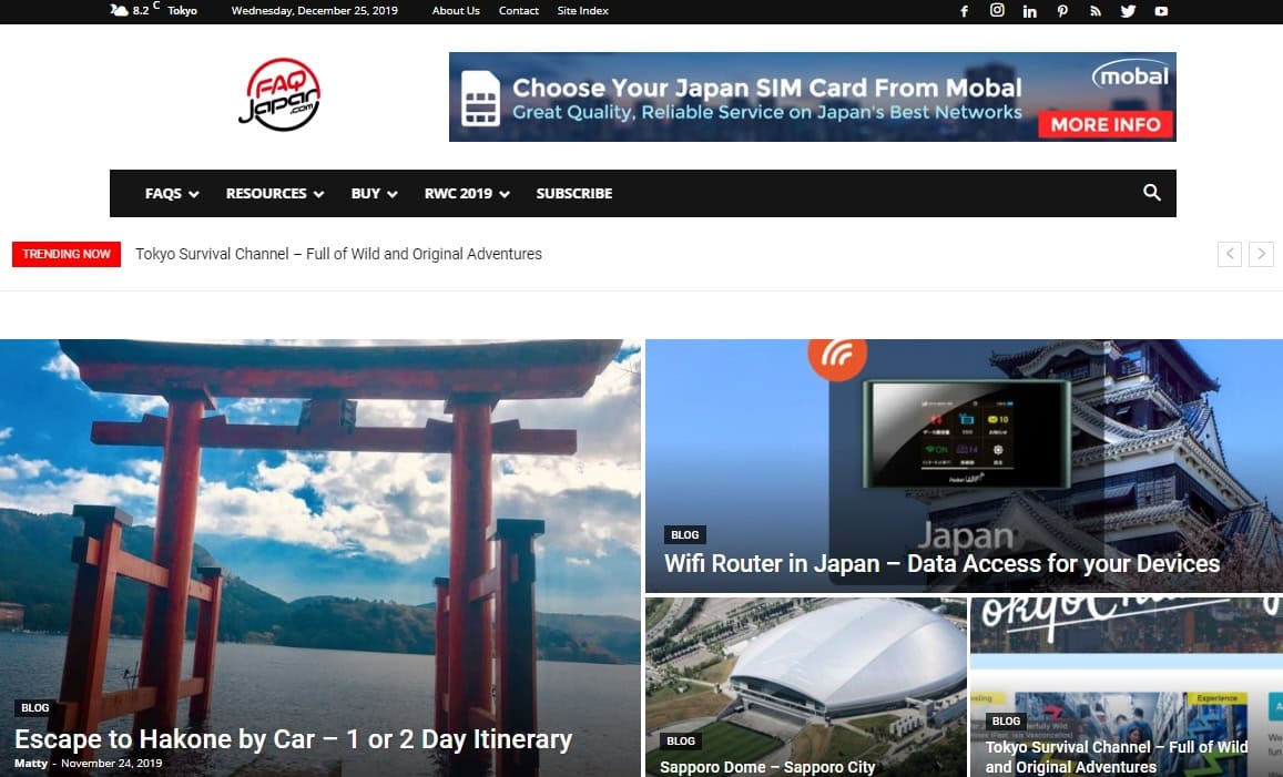 A screenshot from FAQ Japan, a website all about life in Japan, run by Matt.