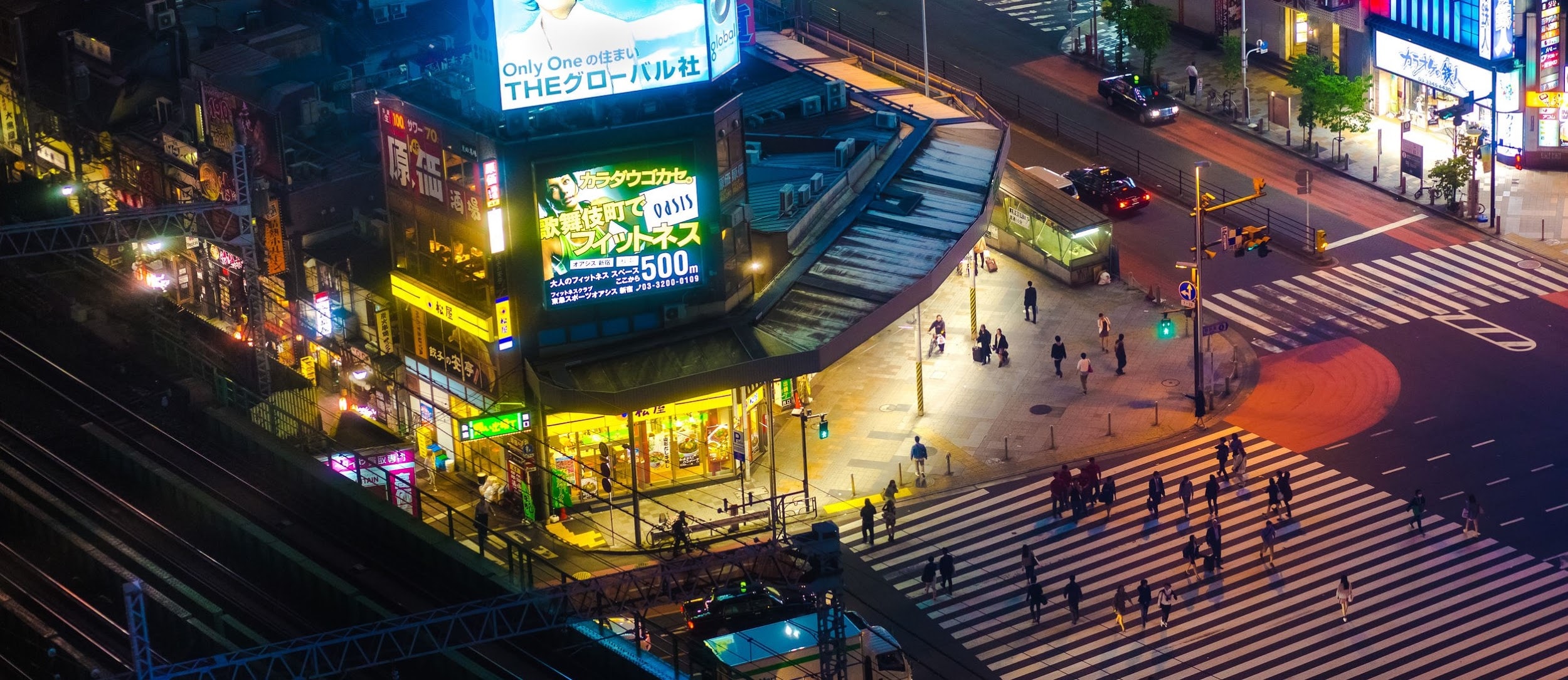 Shinjuku, one of the biggest stations in Tokyo at night.
