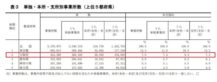冒頭でもお伝えした通り、大阪は、東京に次ぐ事業者数、労働者人口を誇る全国ナンバー2の産業都市です。