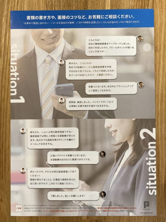 最後に、求人情報は本日中に出しますということと、可能であれば、その求人情報に関して、LINEで感想を教えてくださいとのことでした。
