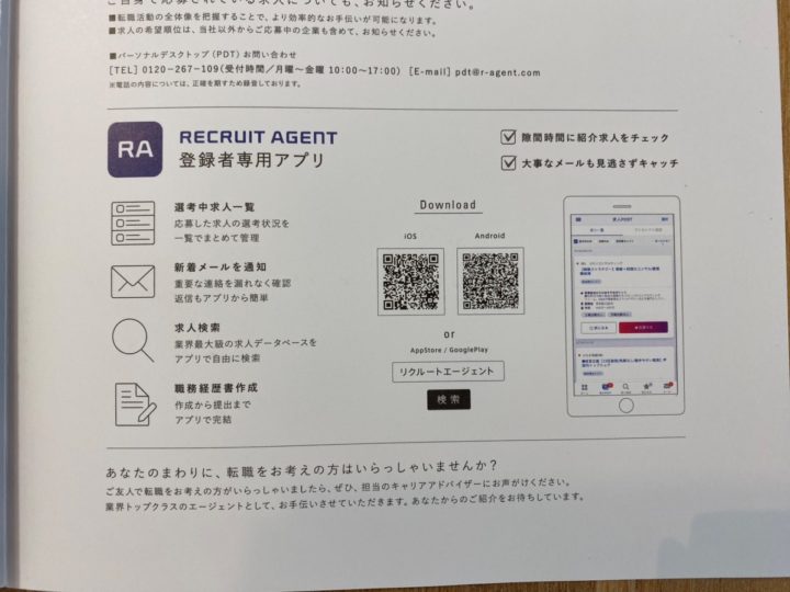 リクルートエージェントには専用アプリがあり、その導入と使い方の説明でした。